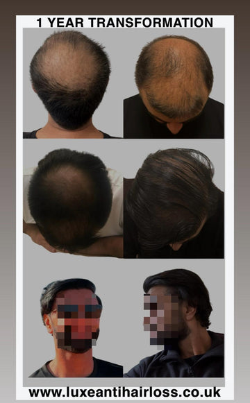 See the difference a few months of consistent care can make. LUXE Organic Hair Oil is designed to revitalise the scalp, stimulate hair follicles, and bring back natural thickness and shine.